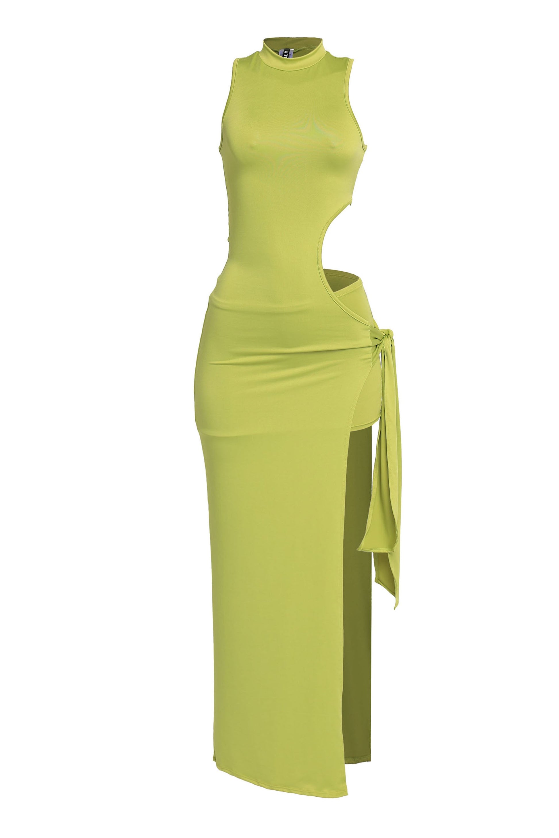 This sleeveless maxi dress features a mock neck and a 58-inch high point shoulder length, designed to hug your curves with its bodycon fit. Made from a stretch blend of 88% polyester and 12% spandex, the unlined fabric is semi-sheer and may become more transparent when stretched. The dress includes a slit detail for added movement and style. Available in sizes S, M, and L, it offers versatile color options. Imported and easy to care for, simply hand wash in cold water and hang dry; avoid bleach to maintain fabric quality.